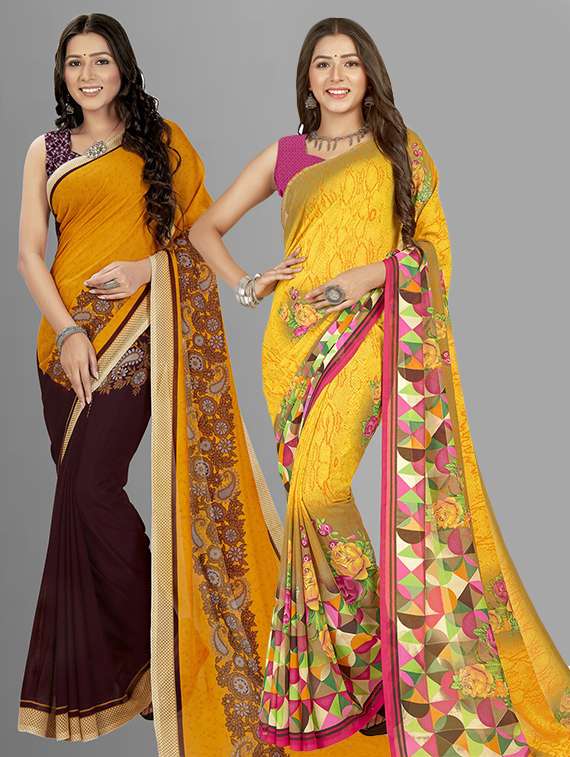 pack of 2 printed casual wear sarees with blouse