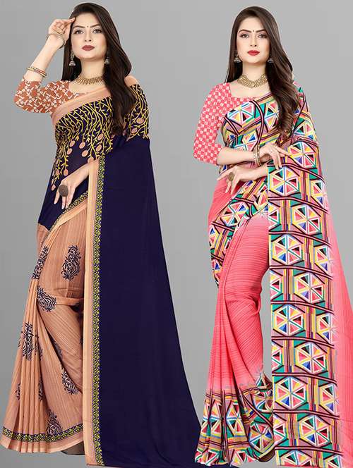 women pack of 2 casual wear combo sarees with blouse