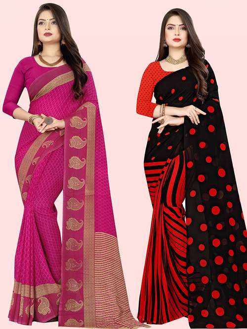 women pack of 2 casual wear combo sarees with blouse