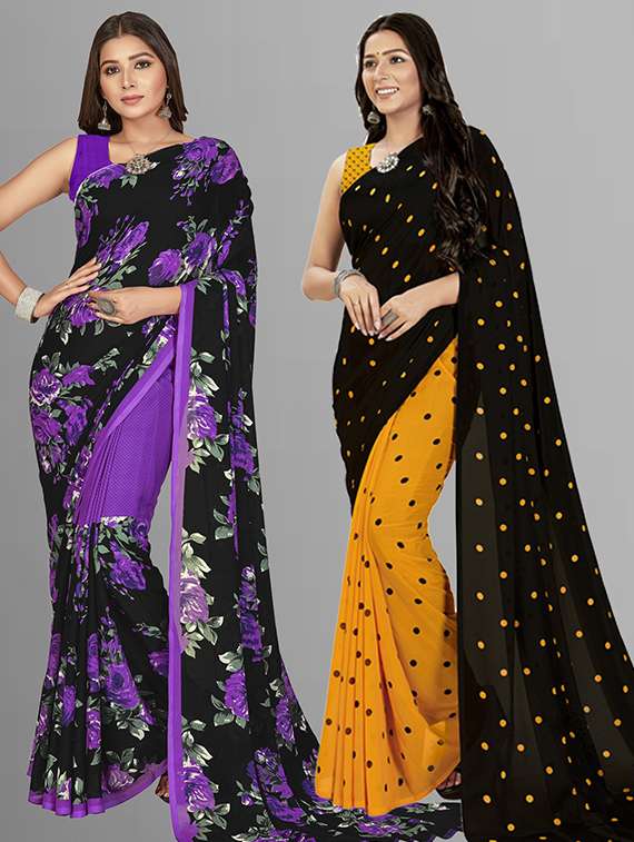 pack of 2 printed casual wear sarees with blouse - 21426803 - Very Small Image - 1