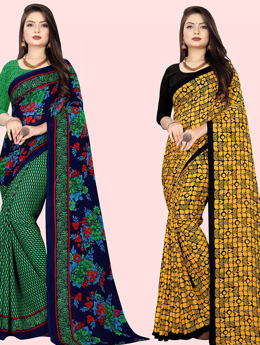 pack of 2 printed casual wear sarees with blouse - 21426947 - Very Small Image - 1