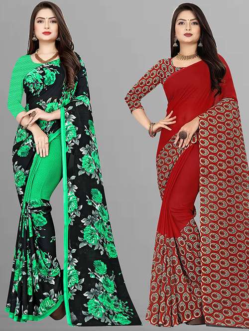 pack of 2 casual wear combo sarees with blouse - 21427027 - Very Small Image - 1