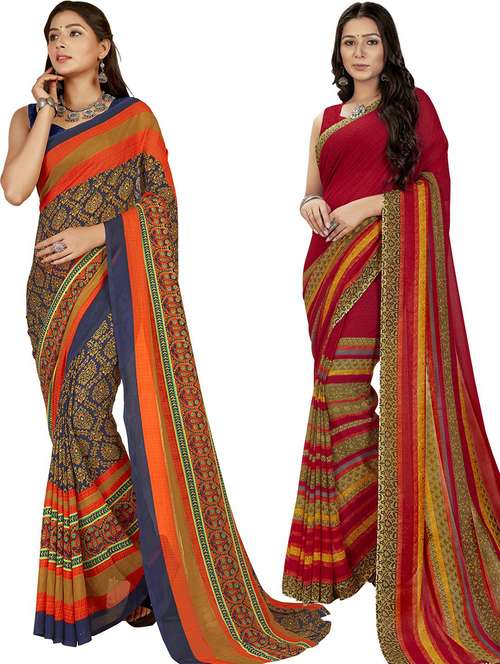 pack of 2 casual wear sarees with blouse - 21427161 - Very Small Image - 1