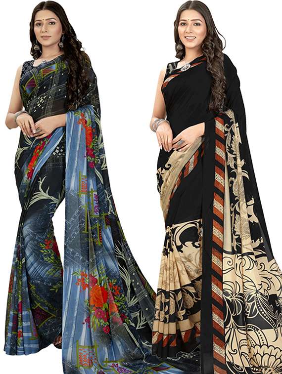 pack of 2 casual wear combo sarees with blouse - 21427174 - Very Small Image - 1