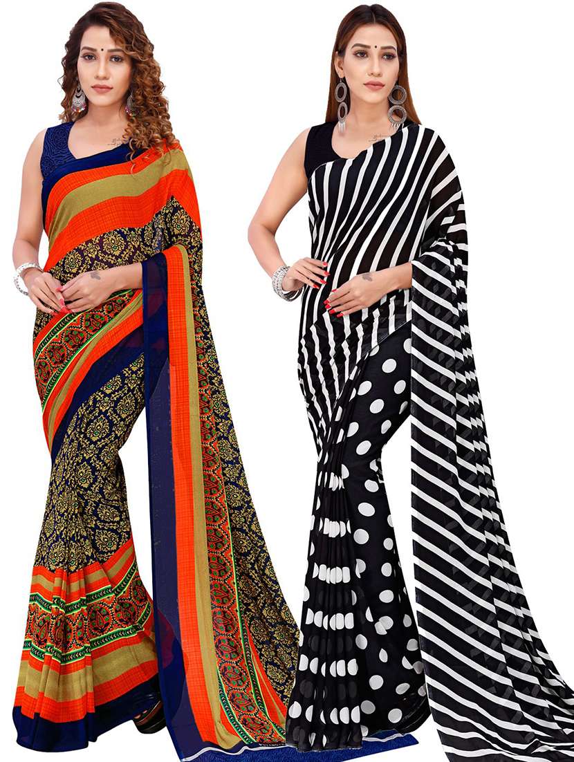 pack of 2 printed casual wear saree with blouse