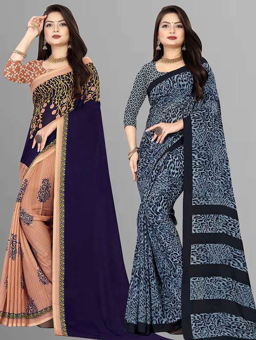 women pack of 2 casual wear combo sarees with blouse - 21427259 - Very Small Image - 1