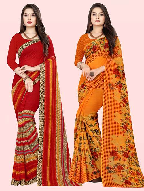 women pack of 2 casual wear combo sarees with blouse - 21427270 - Very Small Image - 1