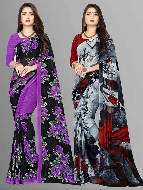 women pack of 2 casual wear combo sarees with blouse