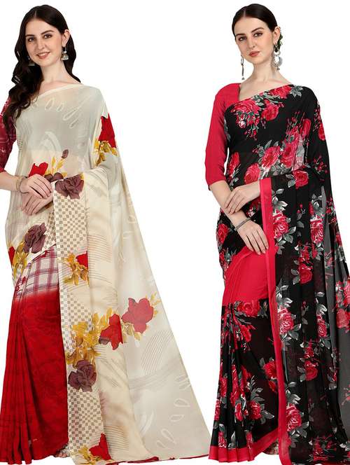 women pack of 2 casual wear combo sarees with blouse - 21427398 - Very Small Image - 1