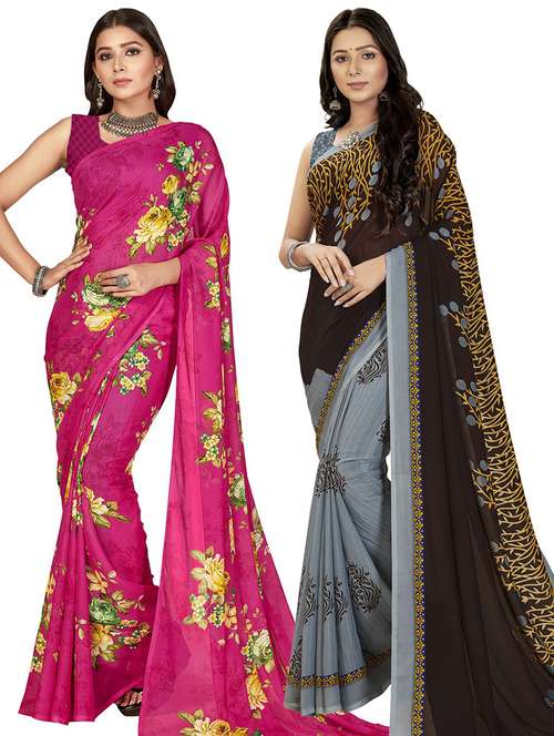women pack of 2 casual wear combo sarees with blouse - 21427402 - Very Small Image - 1