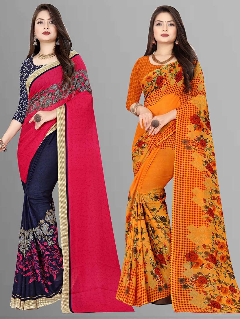 women pack of 2 casual wear combo sarees with blouse