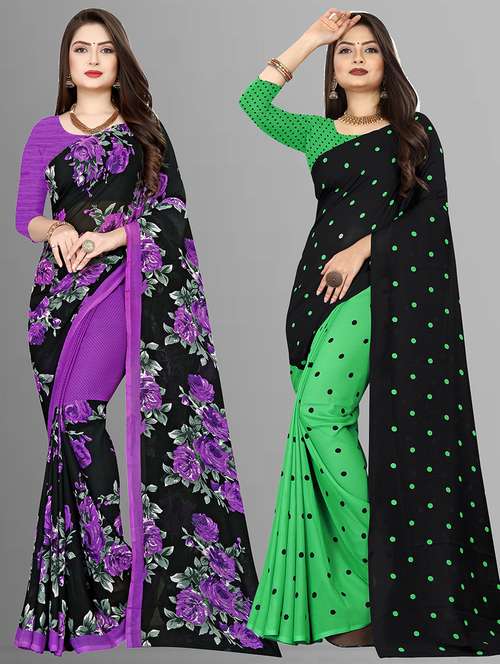 women pack of 2 casual wear combo sarees with blouse - 21427477 - Very Small Image - 1