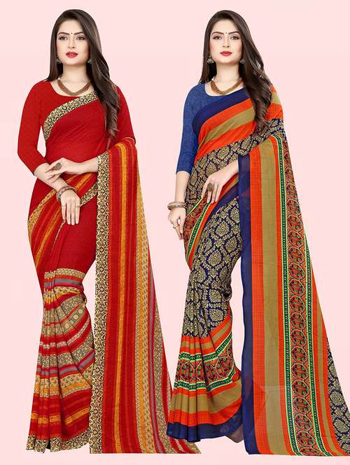 women pack of 2 casual wear combo sarees with blouse