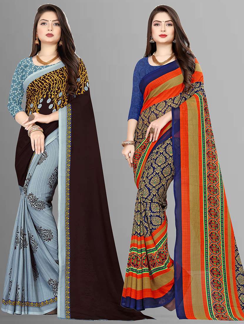 women pack of 2 casual wear combo sarees with blouse