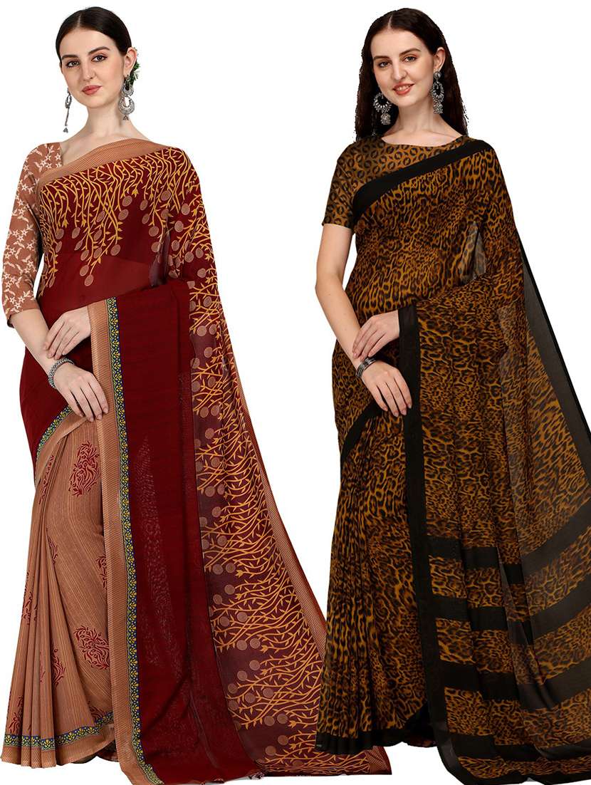 women pack of 2 casual wear combo sarees with blouse
