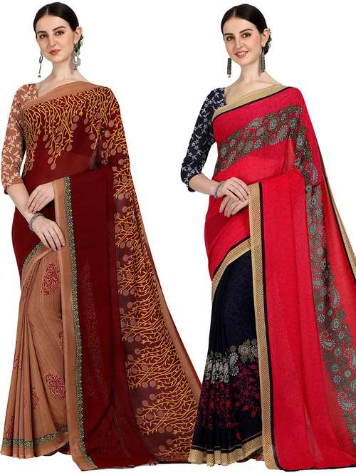 women pack of 2 casual wear combo sarees with blouse