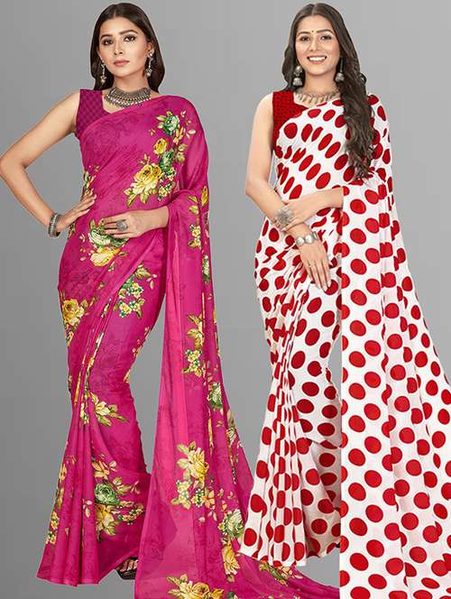 women pack of 2 casual wear combo sarees with blouse