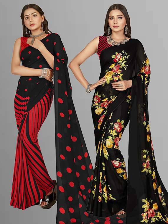 women pack of 2 casual wear sarees with blouse