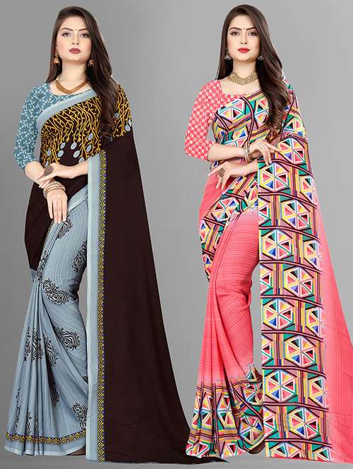 women pack of 2 casual wear combo sarees with blouse