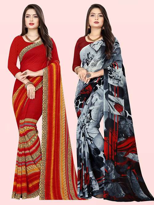 women pack of 2 casual wear combo sarees with blouse - 21428128 - Very Small Image - 1