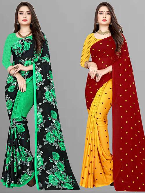 women pack of 2 casual wear combo sarees with blouse
