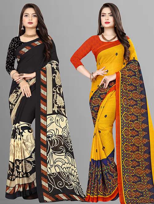 women pack of 2 casual wear combo sarees with blouse - 21428161 - Very Small Image - 1