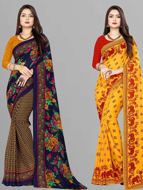 women pack of 2 casual wear sarees with blouse - 21428169 - Very Small Image - 1