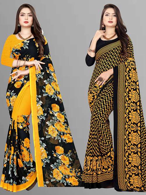women pack of 2 casual wear combo sarees with blouse