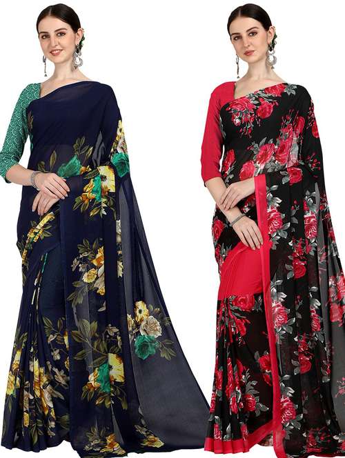 women pack of 2 casual wear combo sarees with blouse