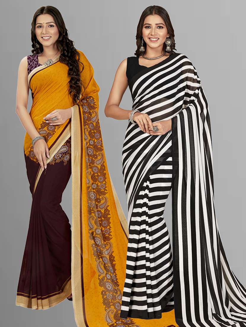 women pack of 2 casual wear combo sarees with blouse