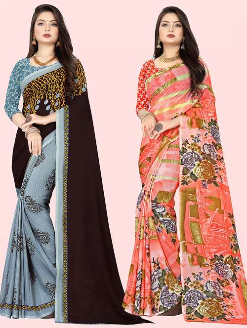 women pack of 2 casual wear combo sarees with blouse