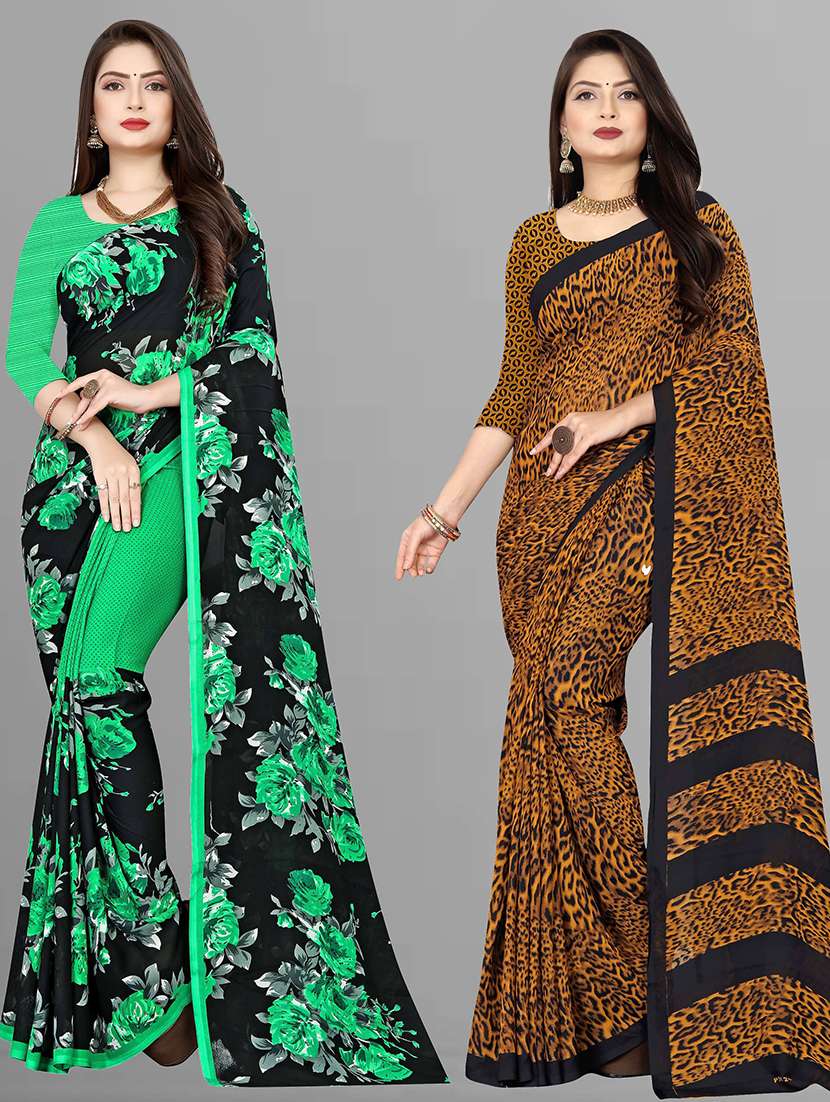 women pack of 2 casual wear combo sarees with blouse