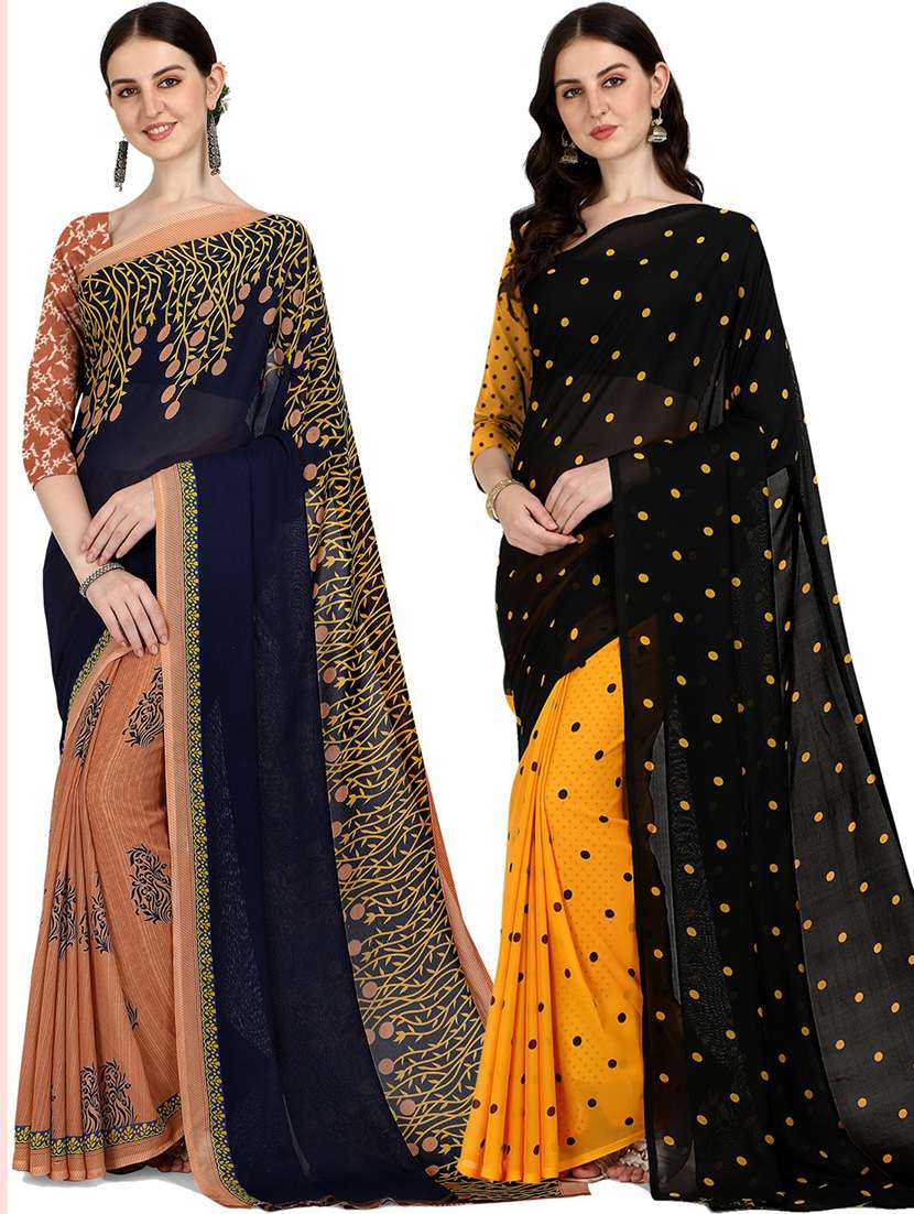 women pack of 2 casual wear combo sarees with blouse