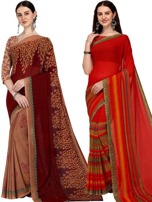 women pack of 2 casual wear sarees with blouse