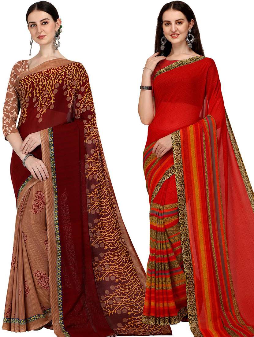women pack of 2 casual wear sarees with blouse - 21428465 - Very Small Image - 1
