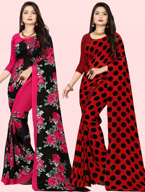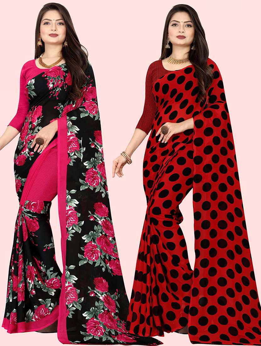 women pack of 2 casual wear combo sarees with blouse