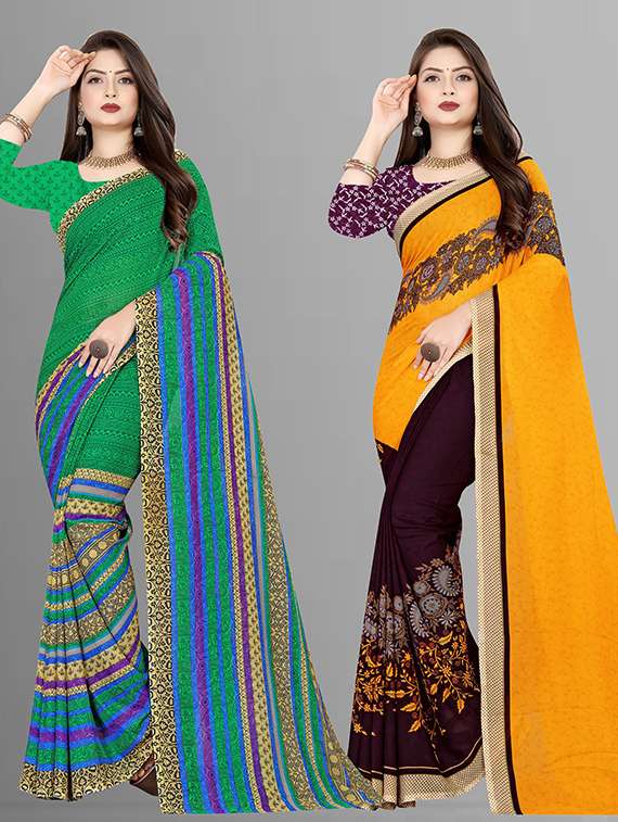 women pack of 2 casual wear combo sarees with blouse