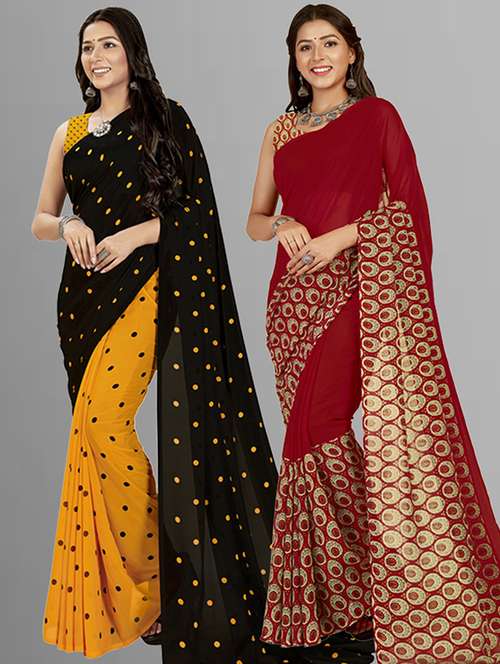 women pack of 2 casual wear combo sarees with blouse