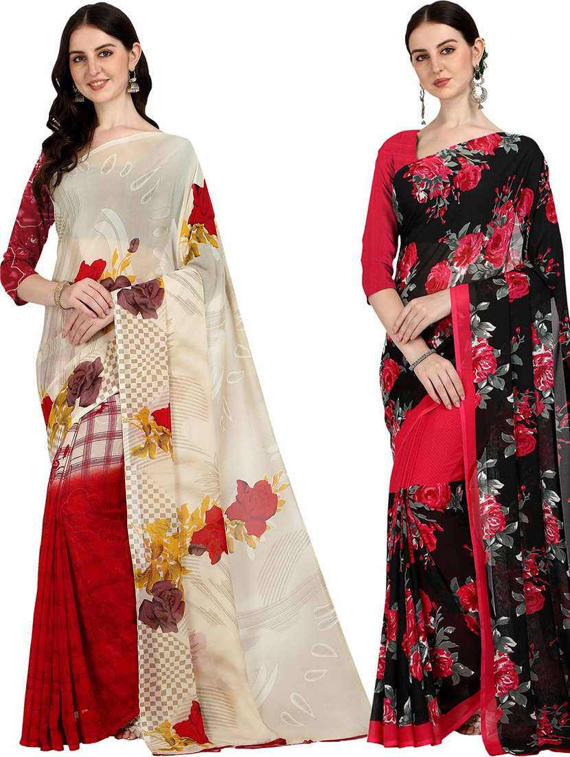 women pack of 2 casual wear sarees with blouse - 21428684 - Very Small Image - 1