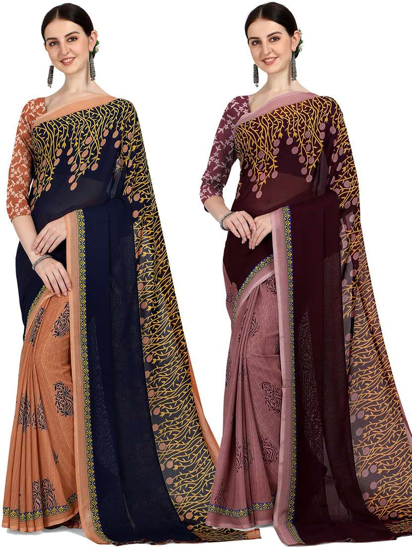 women pack of 2 casual wear combo sarees with blouse