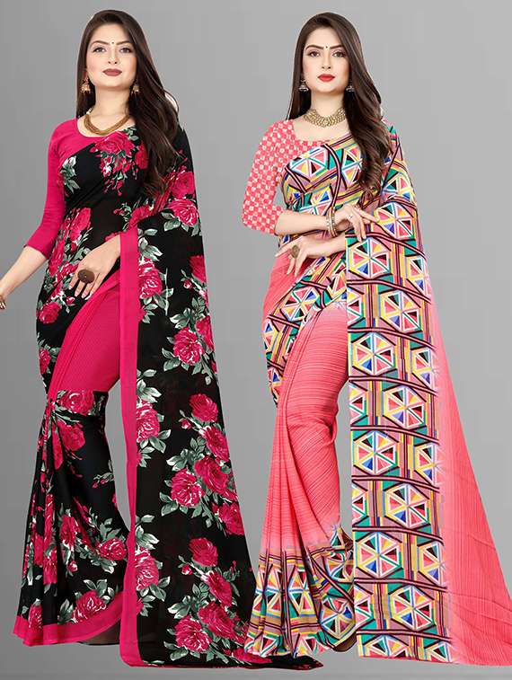 women pack of 2 casual wear combo sarees with blouse - 21428808 - Very Small Image - 1
