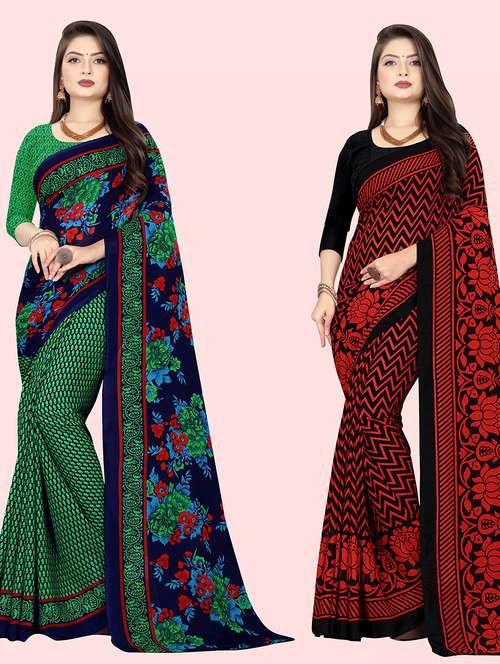 women pack of 2 casual wear combo sarees with blouse