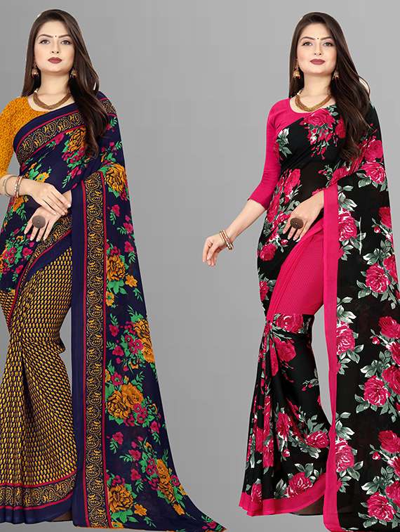 women pack of 2 casual wear combo sarees with blouse
