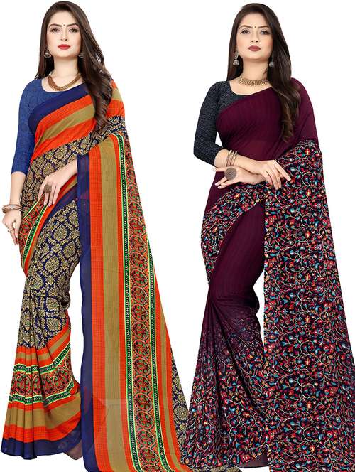 women pack of 2 casual wear combo sarees with blouse