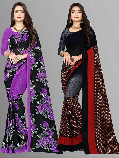 women pack of 2 casual wear combo sarees with blouse - 21429009 - Very Small Image - 1