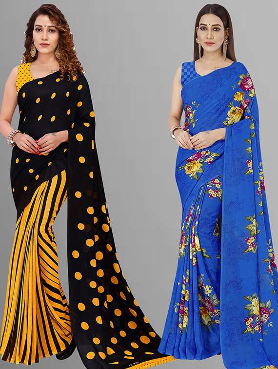 women pack of 2 casual wear sarees with blouse - 21429013 - Very Small Image - 1