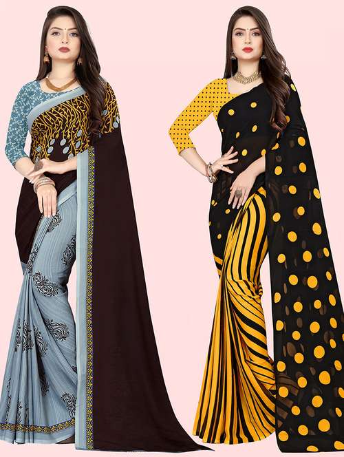women pack of 2 casual wear combo sarees with blouse - 21429057 - Very Small Image - 1