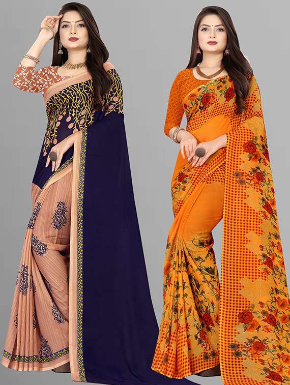 women pack of 2 casual wear sarees with blouse