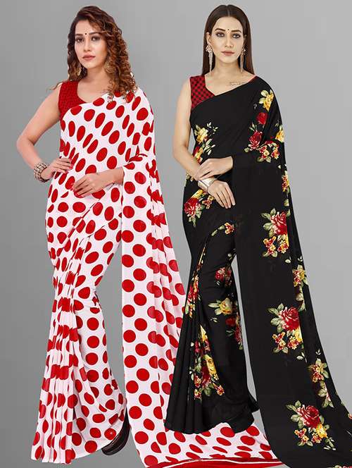 women pack of 2 casual wear combo sarees with blouse - 21429065 - Very Small Image - 1