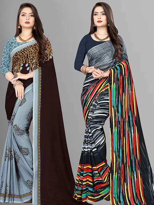 women pack of 2 casual wear combo sarees with blouse - 21429127 - Very Small Image - 1
